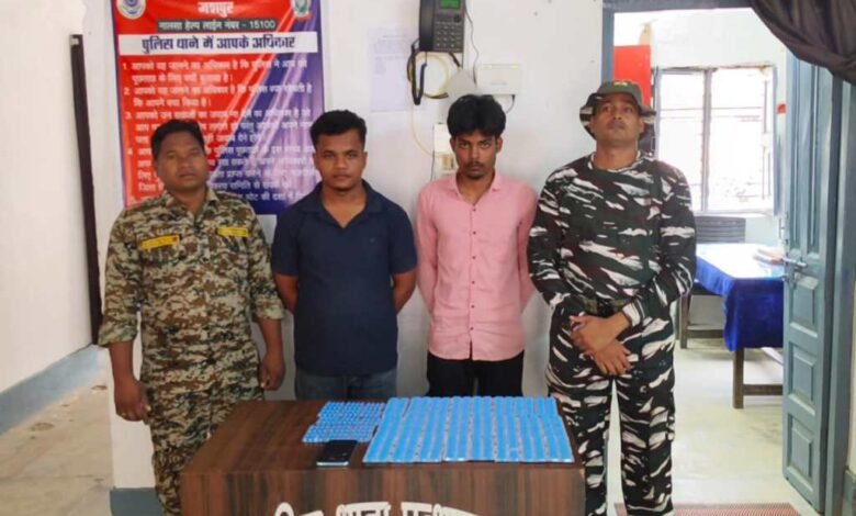 सूचना पर वरिष्ठ पुलिस अधिकारियों को अवगत कराते हुए थाना पत्थलगांव पुलिस की टीम मौके पर पहुंची। पुलिस को देखते ही दोनों संदिग्ध भागने का प्रयास करने लगे, किंतु टीम ने घेराबंदी कर उन्हें पकड़ लिया। पूछताछ में उन्होंने अपना नाम (1) राशिद अली उम्र 22 वर्ष, निवासी बिलाई टांगर तथा (2) लक्की अंसारी उम्र 21 वर्ष, निवासी प्रेमनगर बताया।