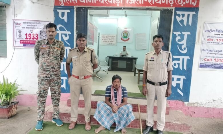 घटना की सूचना पर टीआई घरघोड़ा कुमार गौरव साहू तत्काल अपने स्टाफ के साथ मौके पर पहुंचे और आरोपी शिवचरण चौहान पिता स्व. बस्तीराम चौहान (उम्र 60 वर्ष), निवासी ग्राम बिजारी को हिरासत में ले लिया गया। पूछताछ में आरोपी ने जुर्म स्वीकार कर लिया है, आरोपी से प्रयुक्त आलाजरब एक लोहे का धारदार टांगी की जप्ती की गई है ।
