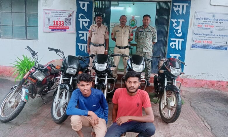 मिली जानकारी के अनुसार, थाना प्रभारी को मुखबिर से सूचना मिली कि दया दास महंत और तिजिया दास महंत, दोनों निवासी छोटे गुमड़ा, चोरी की मोटरसाइकिल को बेचने के लिए ग्राहक तलाश रहे हैं। सूचना पर पुलिस टीम ने दबिश देकर दोनों को पकड़ा। पूछताछ में उन्होंने स्वीकार किया कि 9 सितंबर 2025 को घरघोड़ा जयस्तंभ चौक से साप्ताहिक बाजार के दौरान एक एचएफ डीलक्स मोटरसाइकिल और उसी दिन छाल रोड बाईपास से एक अन्य एचएफ डीलक्स मोटरसाइकिल चोरी की थी। आरोपियों ने यह भी कबूल किया कि 10 से 15 दिन पहले उन्होंने पुंजीपथरा थाना क्षेत्र से तीन मोटरसाइकिल चोरी की थी।