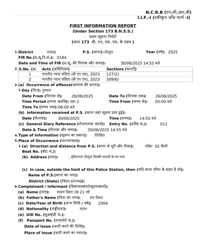 लैलूंगा थाना पुलिस ने FIR दर्ज कर ली है। आरोपियों पर भारतीय न्याय संहिता (BNS) की धारा 309(6) और 127(2) के तहत मामला दर्ज किया गया है। पुलिस ने जांच शुरू कर दी है, लेकिन अब तक किसी आरोपी की गिरफ्तारी नहीं हुई है।