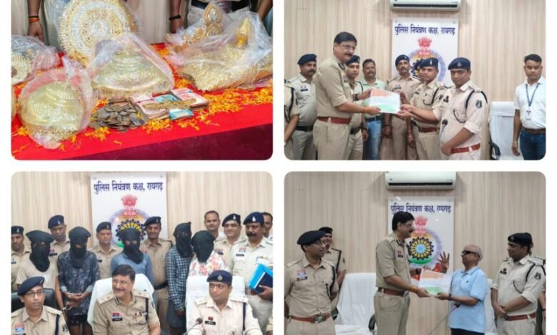 रायगढ़, 23 जुलाई 2025। रायगढ़ के प्रसिद्ध श्री श्याम मंदिर में हुई 27 लाख रुपये की बड़ी चोरी का पर्दाफाश करते हुए रायगढ़ पुलिस ने न केवल शत-प्रतिशत चोरी गई संपत्ति बरामद कर ली है, बल्कि 6 आरोपियों को गिरफ्तार कर एक सुनियोजित अपराध की परत-दर-परत सच्चाई सामने ला दी है। इस सफल ऑपरेशन में रायगढ़ पुलिस के साथ बिलासपुर रेंज की मुंगेली और बिलासपुर पुलिस की विशेष टीमों का भी भरपूर सहयोग रहा।